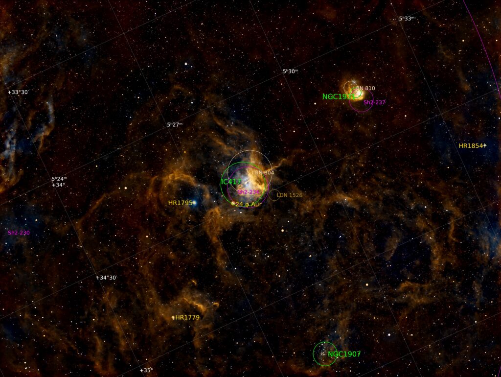 Ime: Sh2-234, IC417, LBN804, Ced46 – Spider nebula