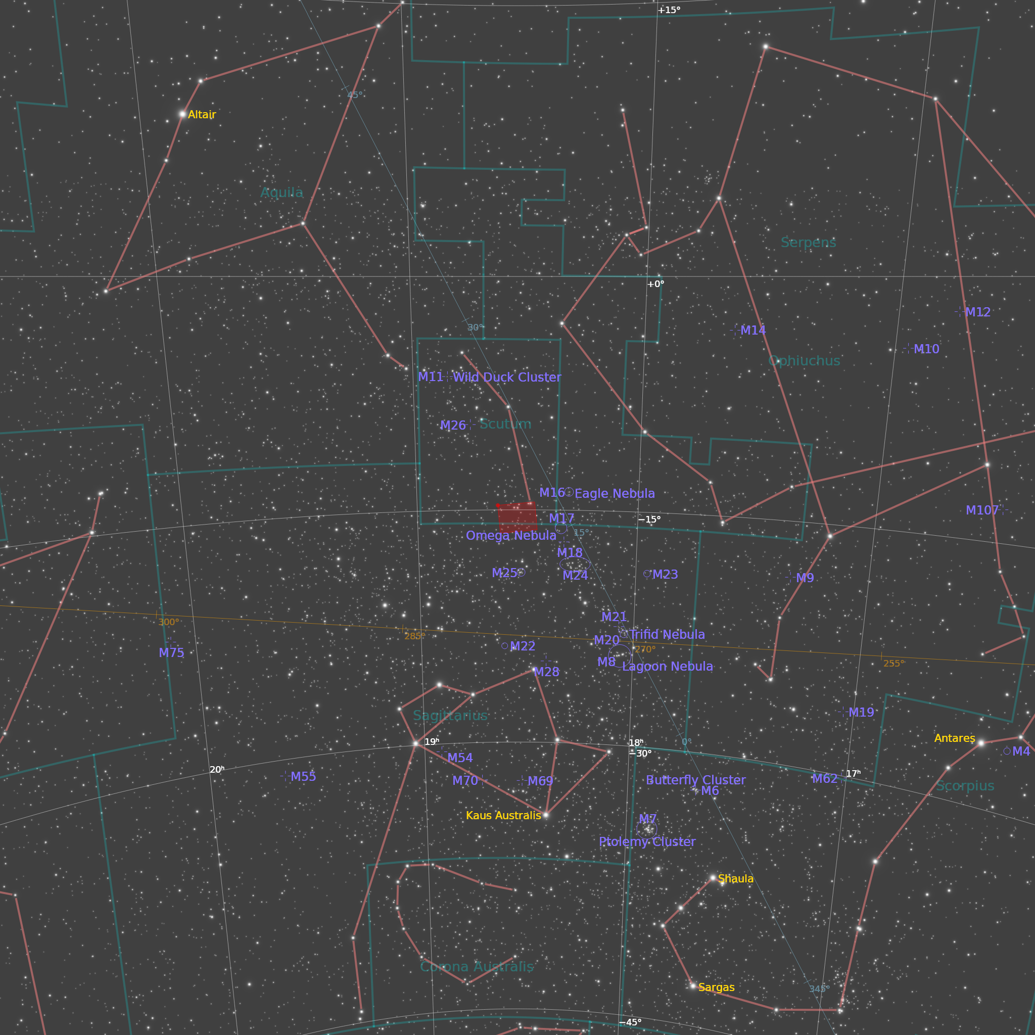 Ova slika prikazuje tamnu maglinu Barnard 312 koja se nalazi unutar Mlečnog puta, oko 1 stepen južno od γ Scutum (Štita), najjužnije zvijezde sazveždja. Sa prividnom veličinom od približno 1,2 stepena, pojavljuje se kao jasna struktura nalik rupi u Mlečnom putu. Severni deo je dobro definisan, dok se južna granica čini difuznom. Južno i jugozapadno od tamne magline širi se izuzetno slaba HA maglina, a u ovom području identifikovane su emisione magline poput LBN 63 i LBN69.