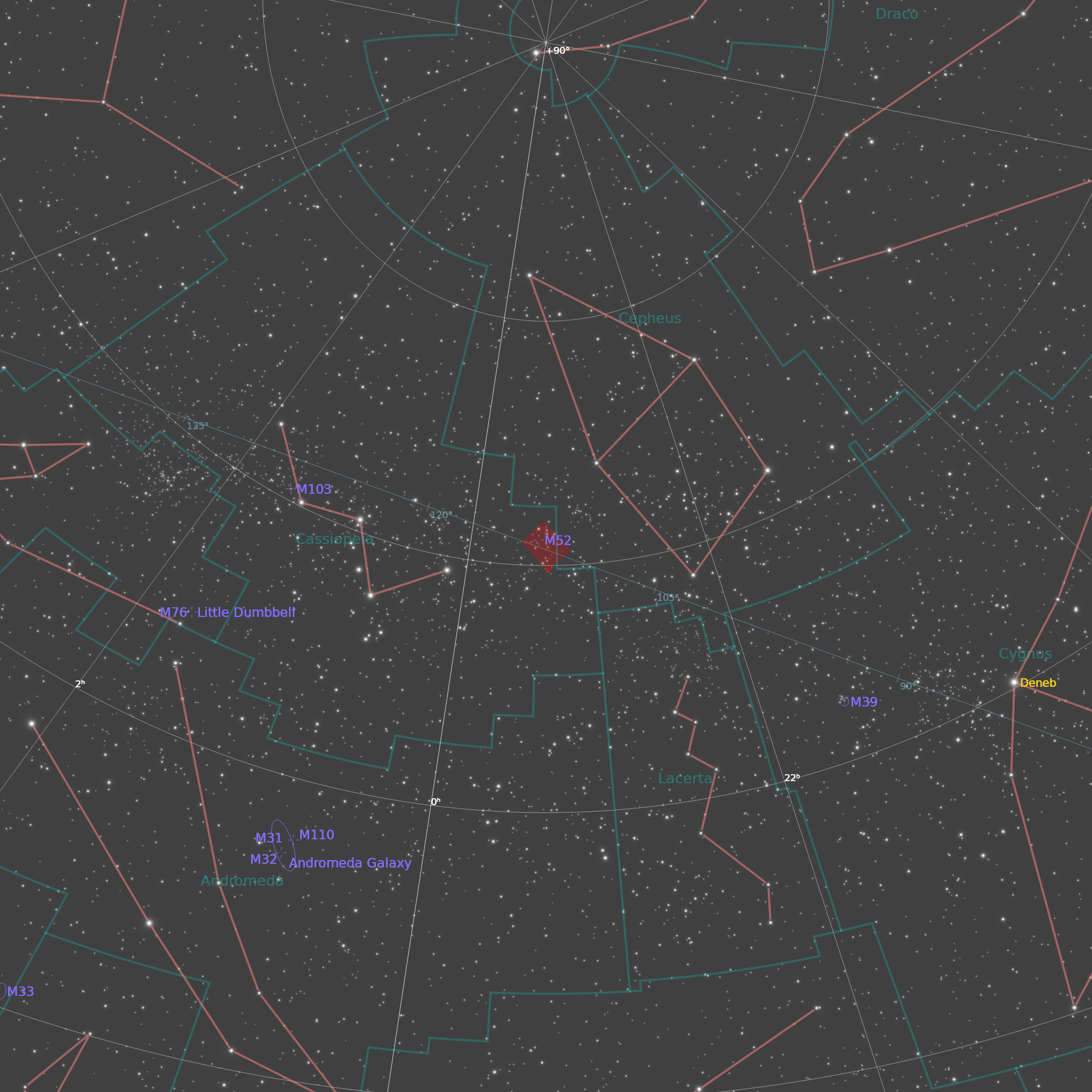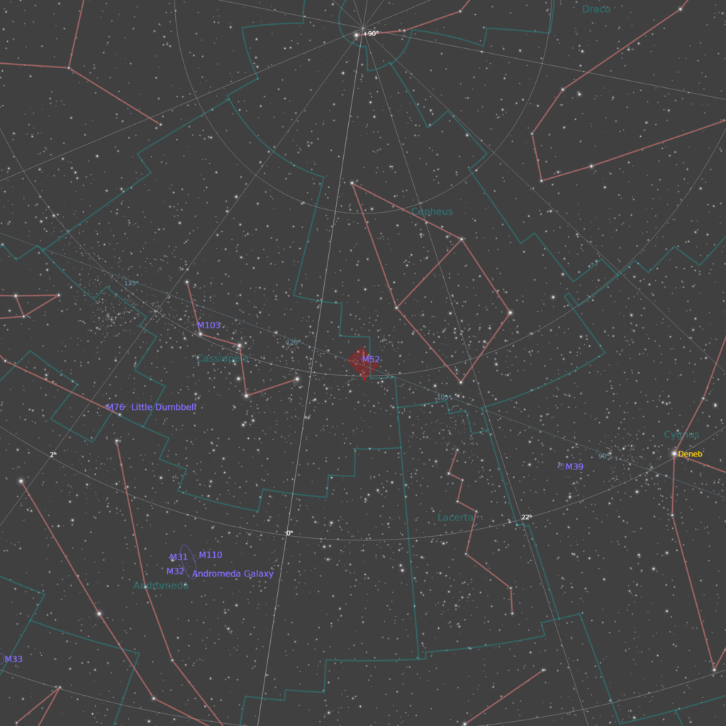 M52, NGC7654, Cr455, Mel243, Cassiopeia Salt and Pepper cluster