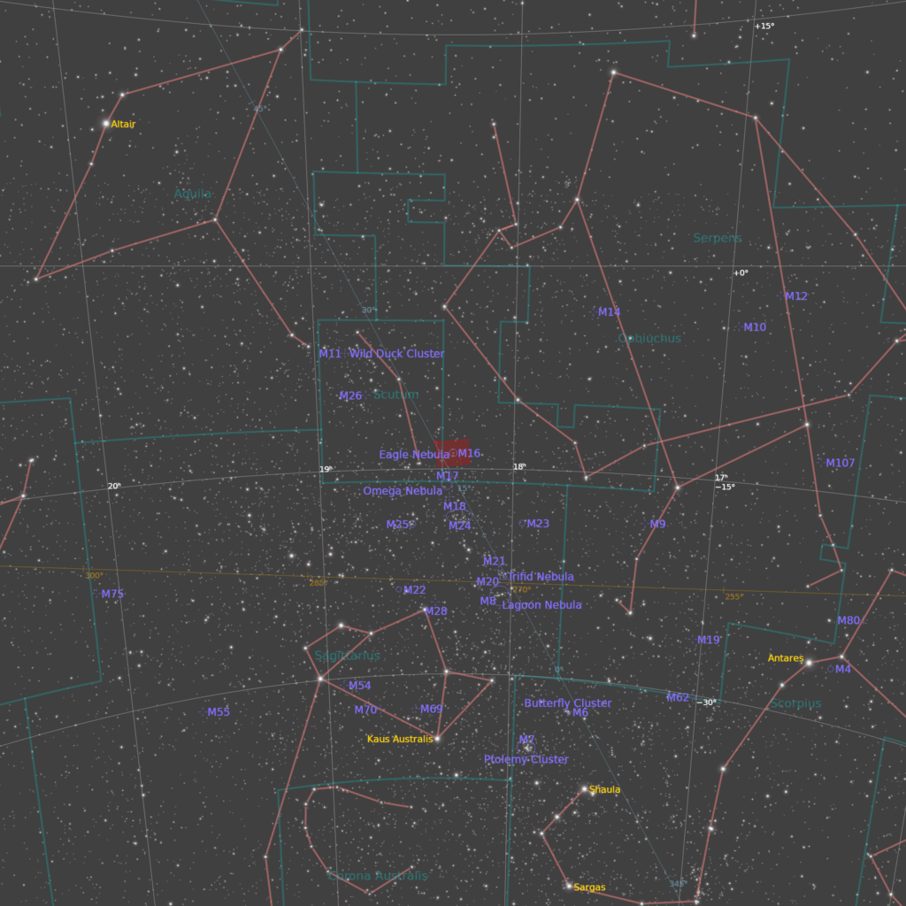 Ime: M16,NGC6611,IC4703, Sh2-49,RCW165,LBN67,Cr375,Mel198,Ced159,Eagle (Star Queen) nebula