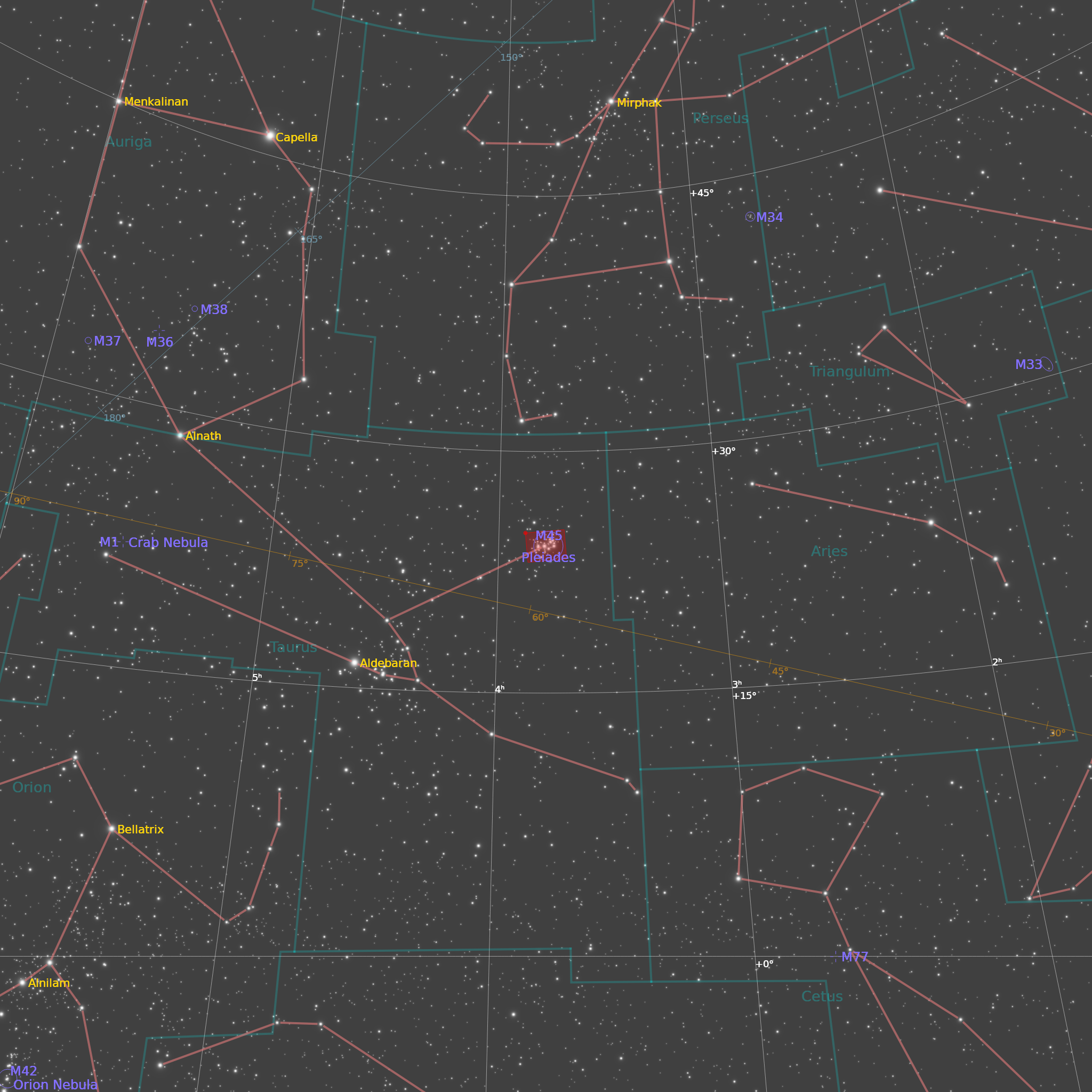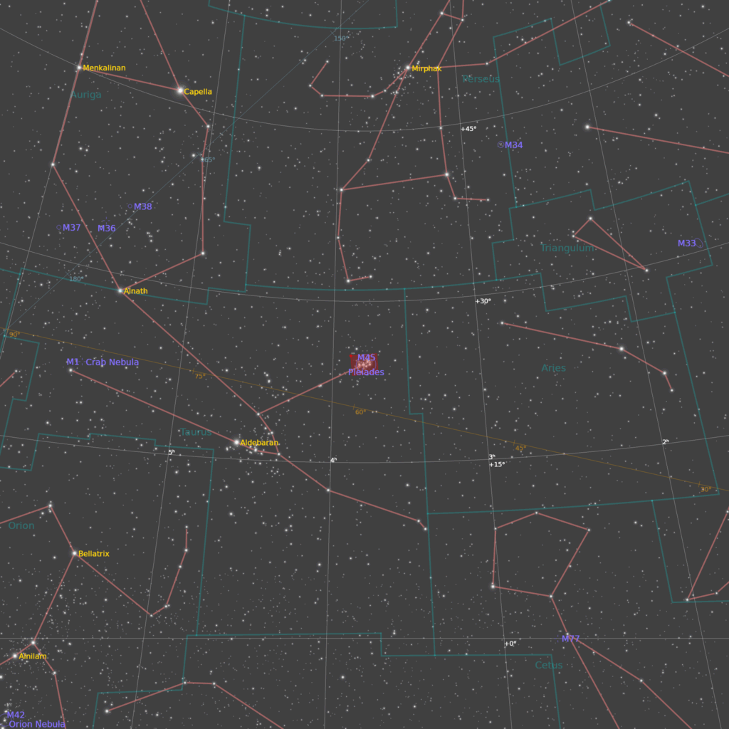 Ime: M45, Cr 42, Mel 22, Pleiades (Vlasici, Seven Sisters, Subaru)