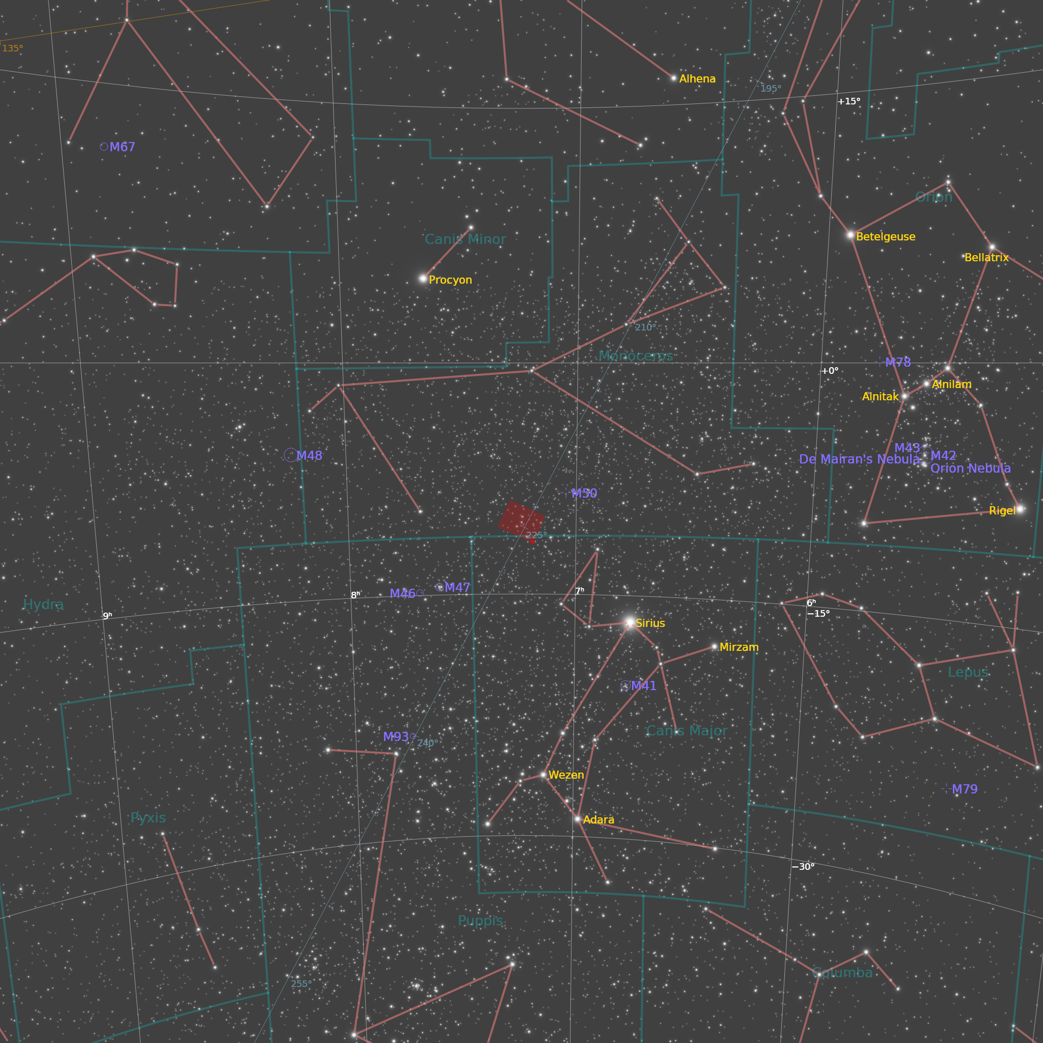 U donjem desnom delu snimka nalazi se emisiona maglina Sh2-294 popularno nazvana Oktopus. Pripada sazveždju Jednorog u blizini poznate magline Galeb.