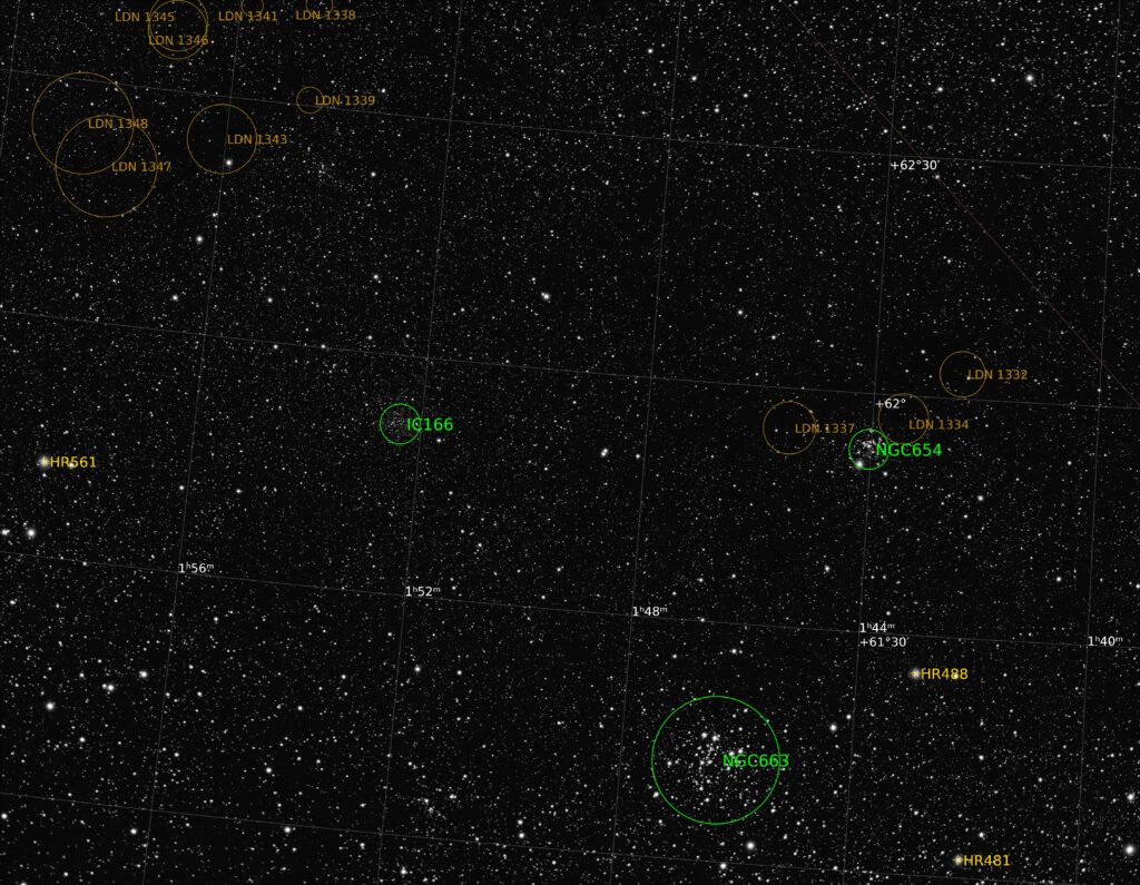 Ime: NGC663, C10, Cr20, Mel11, Lawnmover (Letter S) cluster