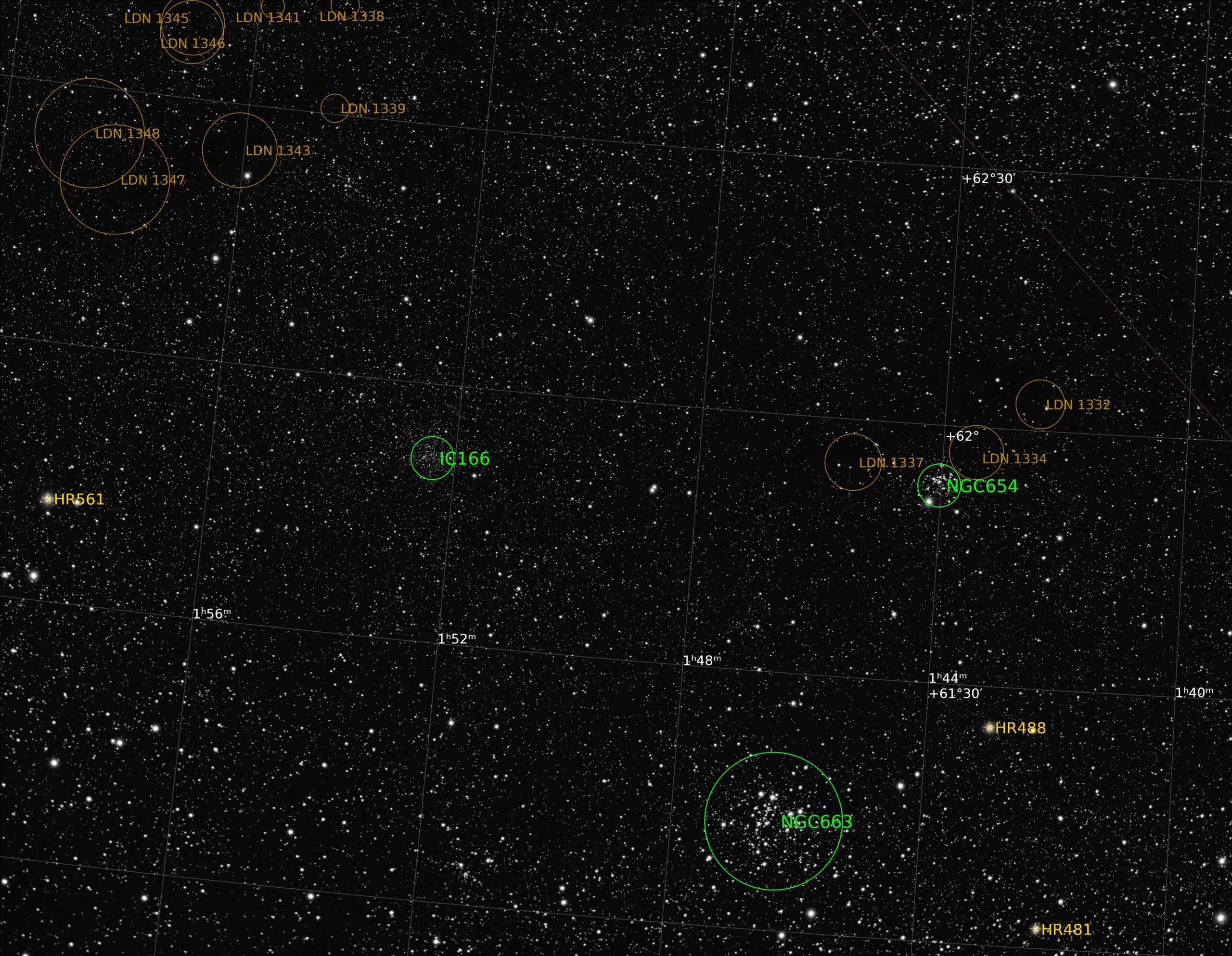 Ime: NGC663, C10, Cr20, Mel11, Lawnmover (Letter S) cluster