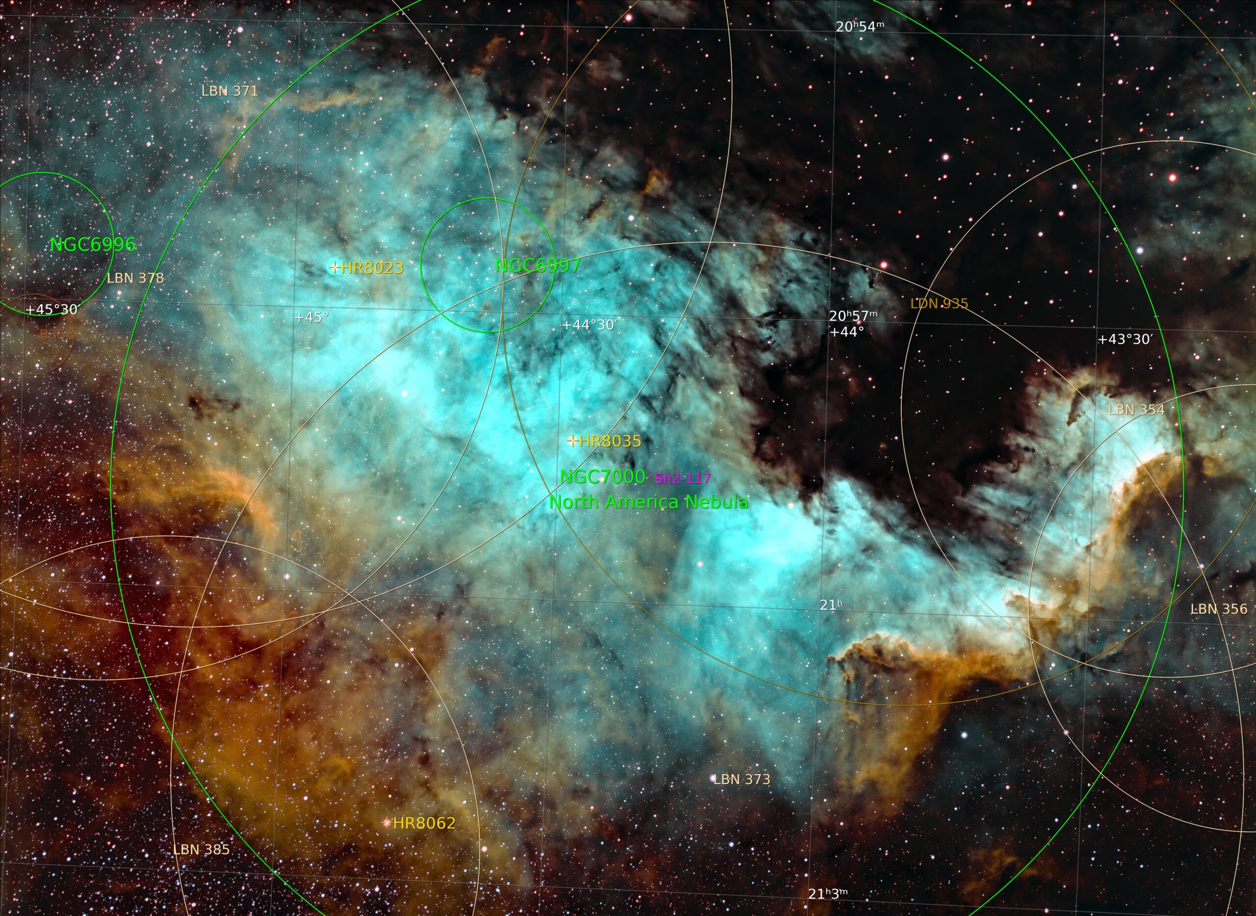 Ime: C20, NGC7000, Sh2-117, LBN373, Ced183d, North America nebula