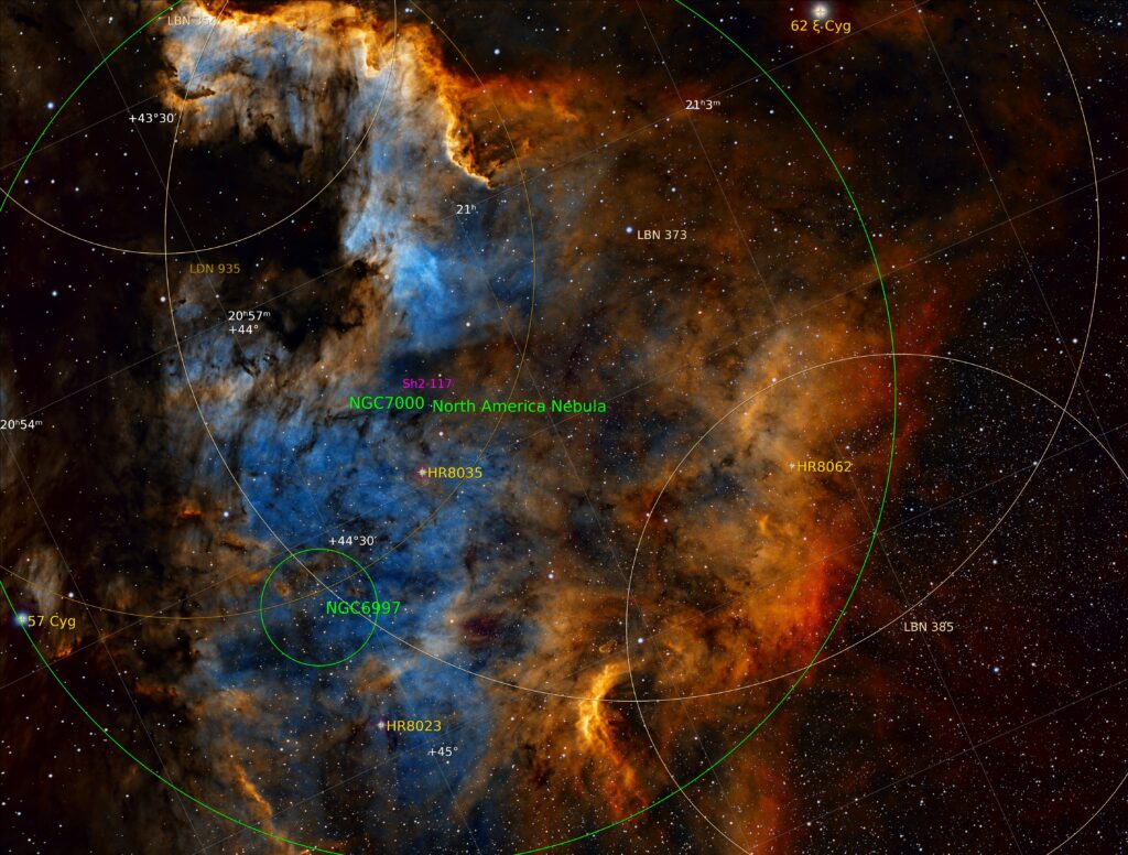 Ime: C20, NGC7000, Sh2-117, LBN373, Ced183d, North America nebula